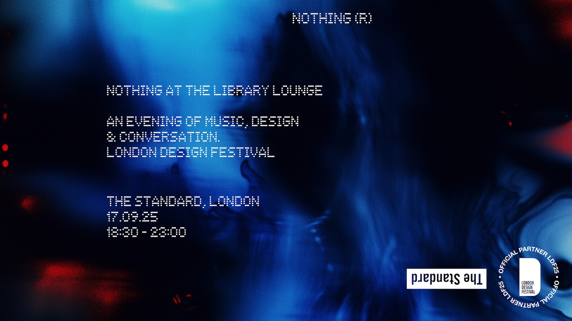 Join us for a relaxed evening of drinks, design, music and conversation with the Nothing Design team in the stunning Library Lounge at The Standard. Once home to the Camden Council Library, it's a cosy lounge filled with a tasteful book collection, small architectural design quirks, and the purpose-built Sounds Studio. Where the Nothing team will be curating music and DJing throughout the evening. Different works and inspiration from the Nothing Design team will be on display, and we'd be excited to talk through them with you. Please RSVP on Eventbrite.