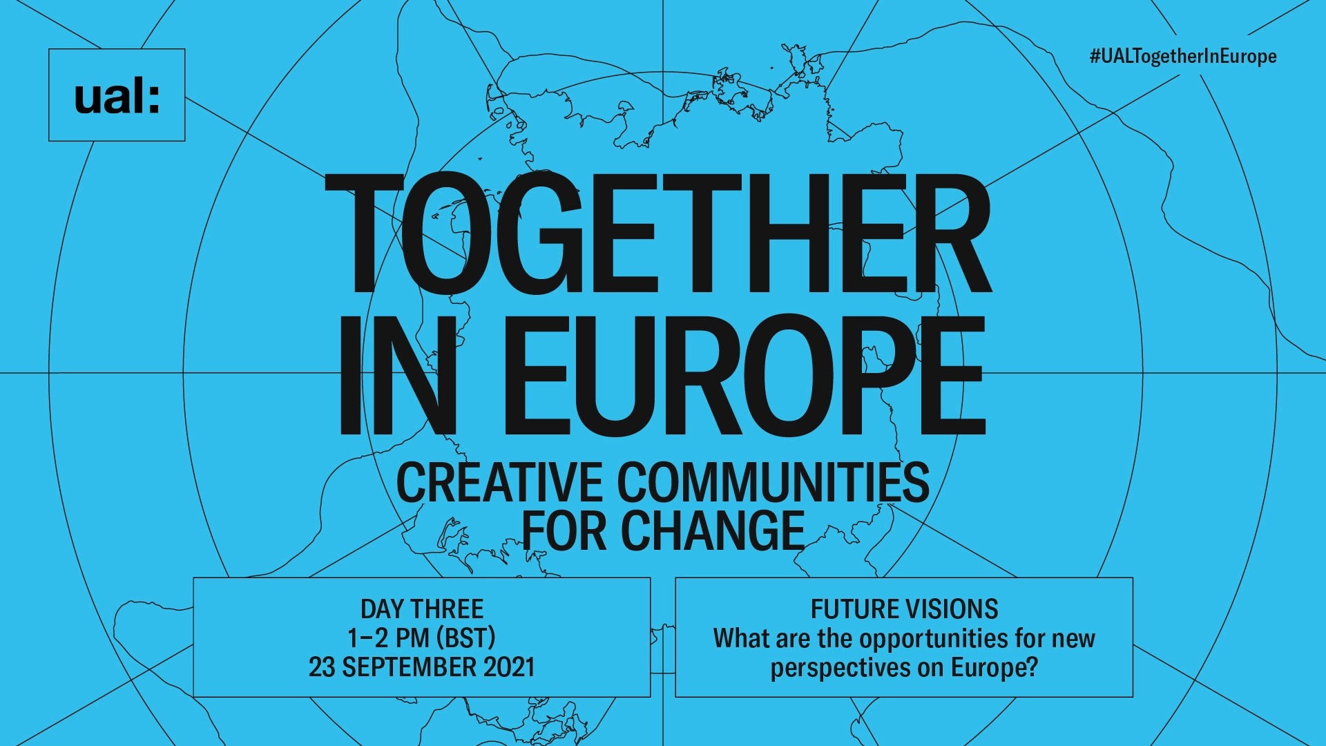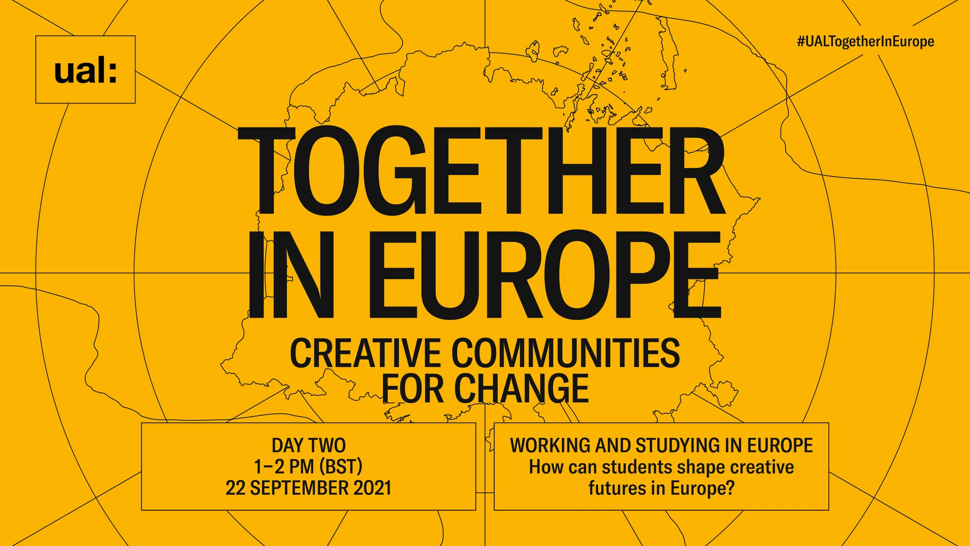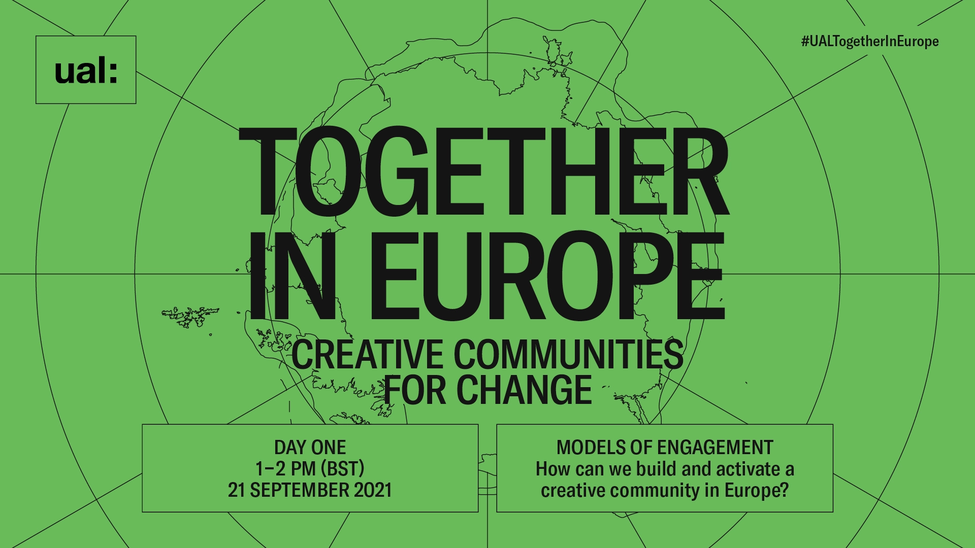 Together in Europe: Creative Communities for Change is an online exhibition and series of events that considers our past, present and future relationship with Europe. In a post-Brexit world, facing the multiple challenges of COVID-19, climate change and racial and social inequalities, how can we work together as a creative community for positive change? Showcasing a wide range of innovative projects from key figures at UAL, alongside voices from our valued European partners. The programme will look for answers to these global challenges. Online showcase launches on 18 September 2021. Online lunchtime event series will take place at 1-2pm (BST) between 21-23 September 2021. 1-2pm, 21 September: Join Mick Finch, Laura Martelloni, and Adam Thorpe as they discuss T-Factor: Unleashing future-facing urban hubs through culture and creativity-led strategies of transformative time. 1-2pm, 22 September: Join the debate with a selected panel of UAL alumni from across Europe, chaired by Dr Nicky Ryan, as they share lived experiences studying and working in Europe. 1-2pm, 23 September: On this final day of our event series, we will look ahead and consider how our relationship with Europe will develop in a post-Brexit landscape.