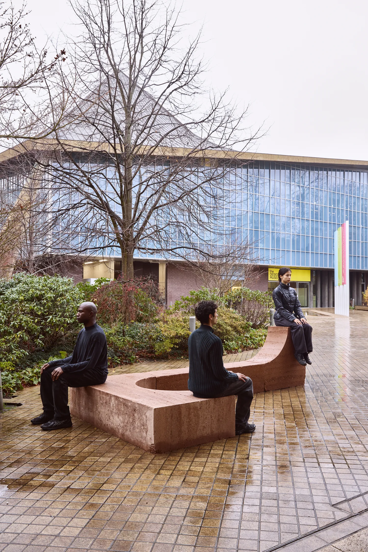 At the entrance courtyard of the Design Museum, a new kind of gathering place emerges - one that blurs the lines between sculpture, architecture and the everyday rituals of city life.