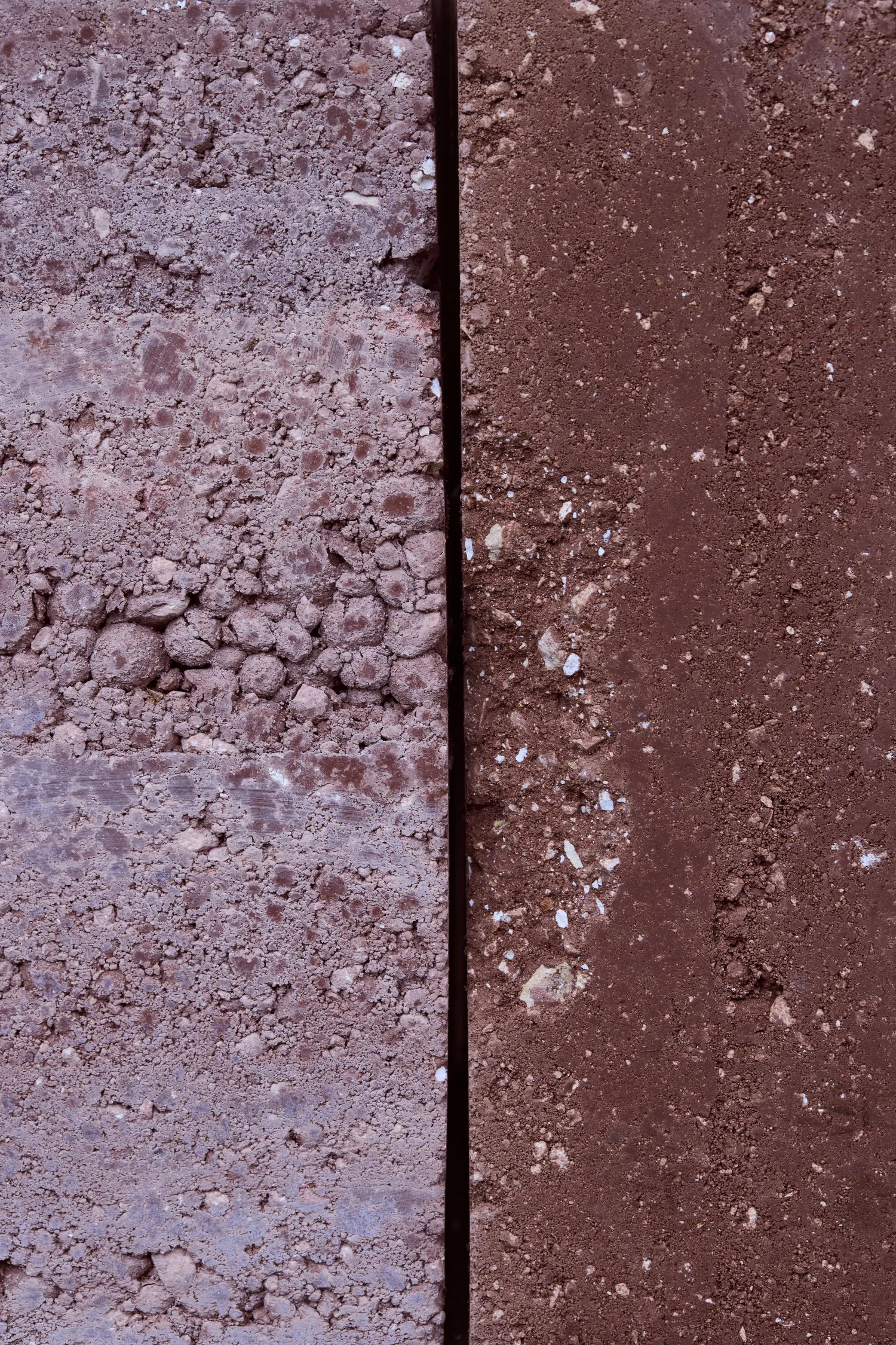 Materiality sits at the heart of the project. Each piece is crafted entirely from soil using the ancient construction method of rammed earth, a process of compacting successive layers to form dense, monolithic structures. The result is both grounding and expressive - natural textures, tonal striations and visible layers that act as a sedimented archive of time.