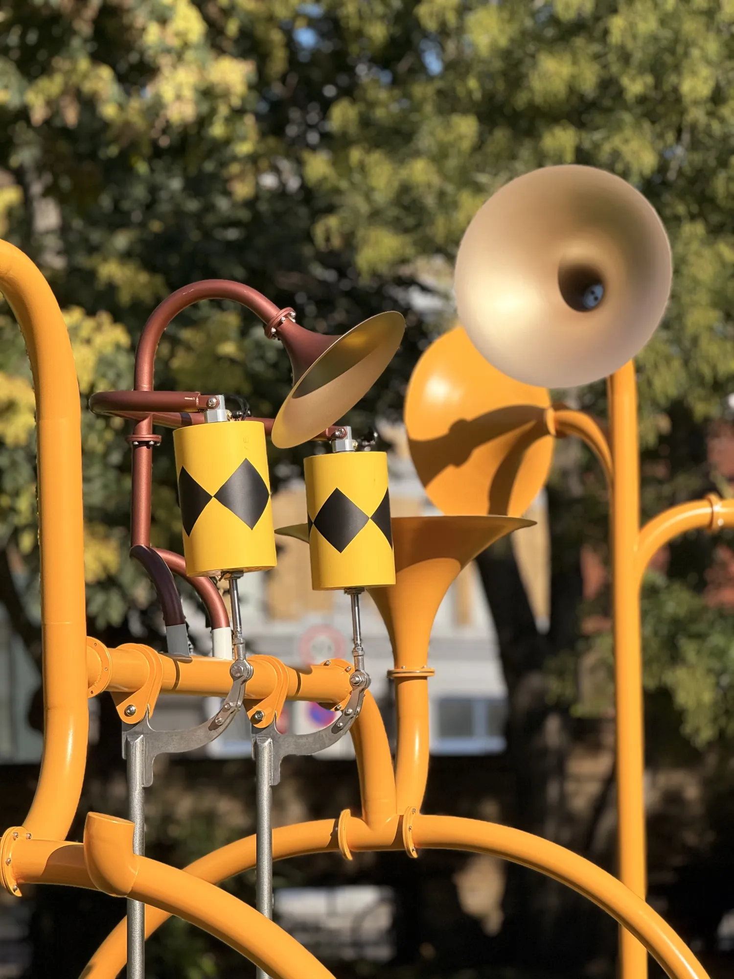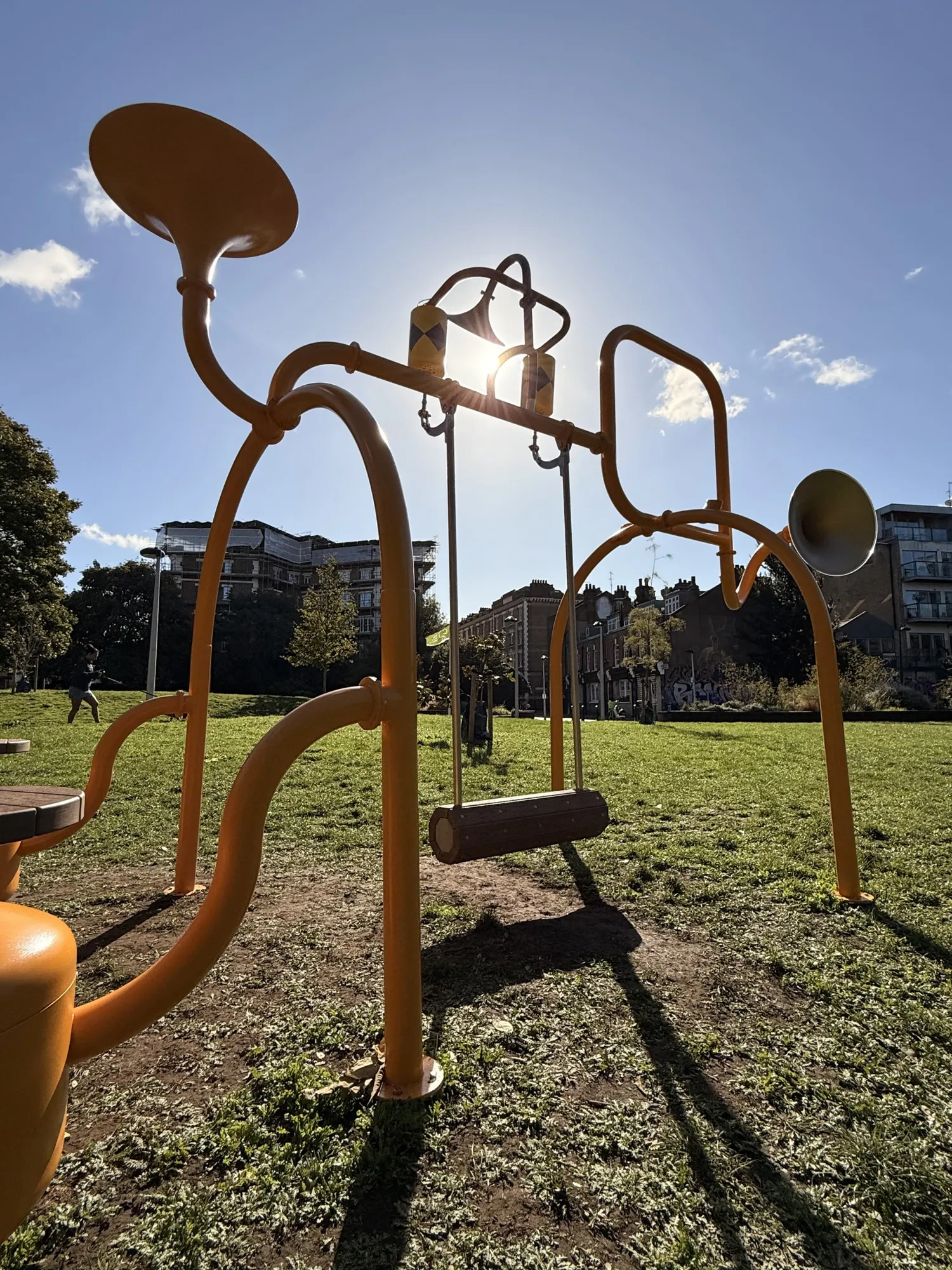 ‘The work blurs the boundaries between playground equipment, sculpture and instrument, with “playing” and “listening” becoming part of the same creative act.’
